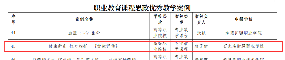 近日,河北省教育厅公布了2023年度职业教育思政课程和课程思政“五个一批”建设项目遴选结果,我校入选职业教育德育工作骨干管理人员、职业教育课程思政优秀教学案例项目。