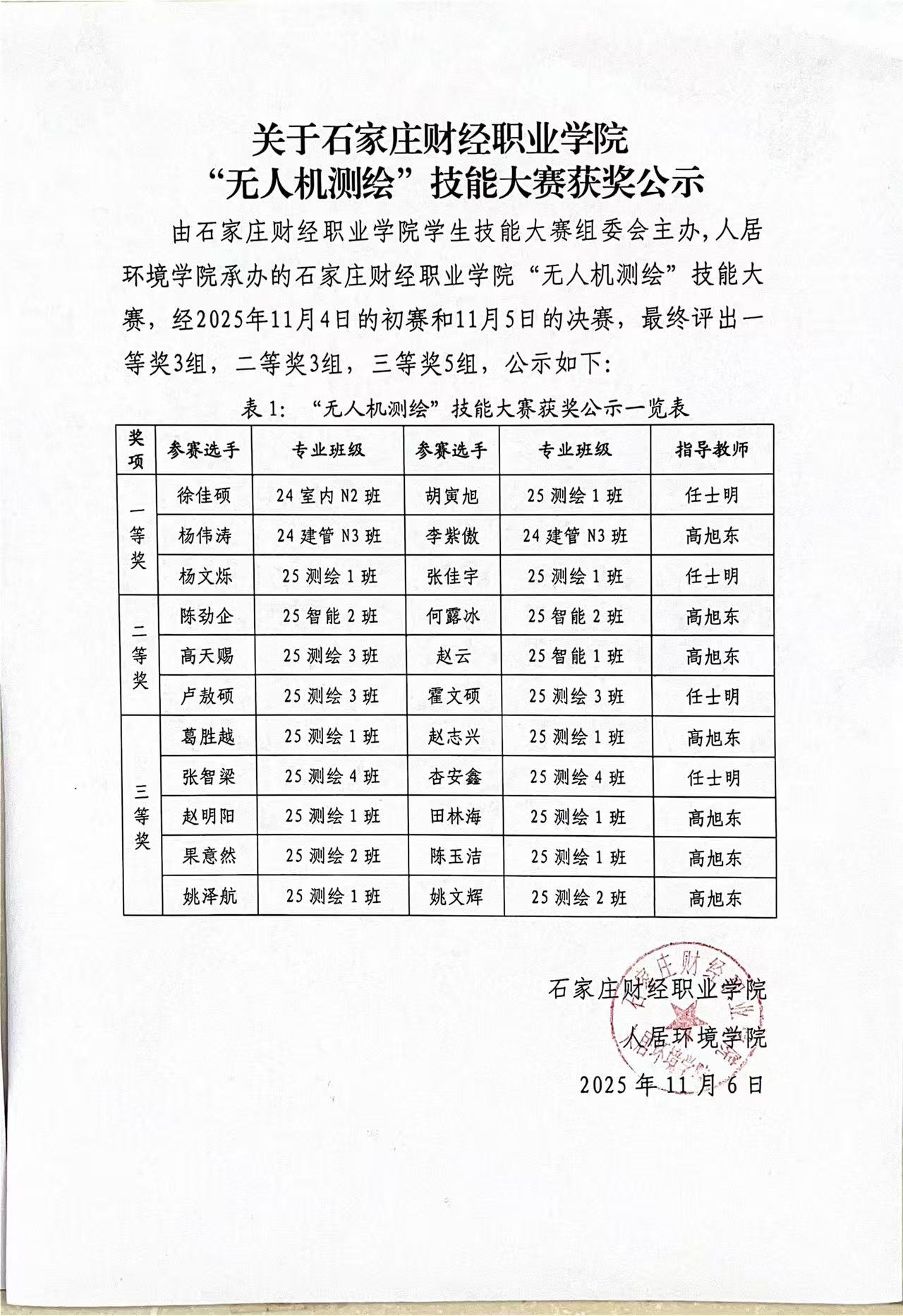 关于亚英体育ag“无人机测绘”技能大赛获奖公示