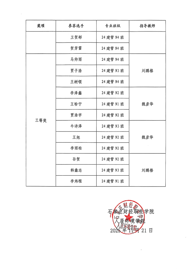 关于2025年亚英体育ag“建筑施工工艺”技能大赛获奖公示