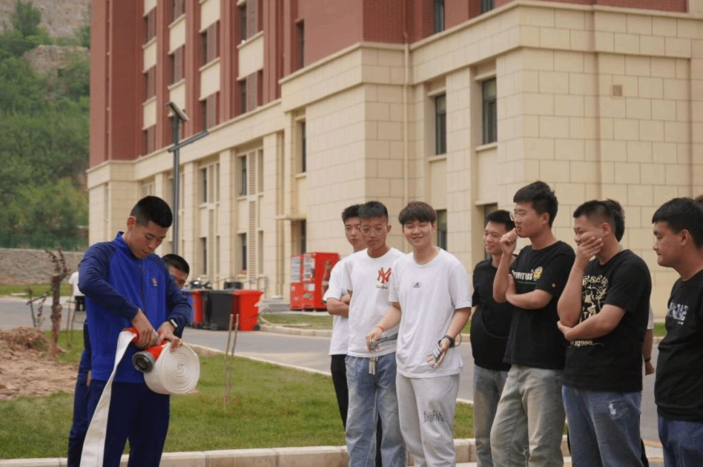 图4 消防技能进社区:学校联合石家庄市鹿泉区山前大道消防救援中队,开展以“联训联战”为主题的消防练兵活动