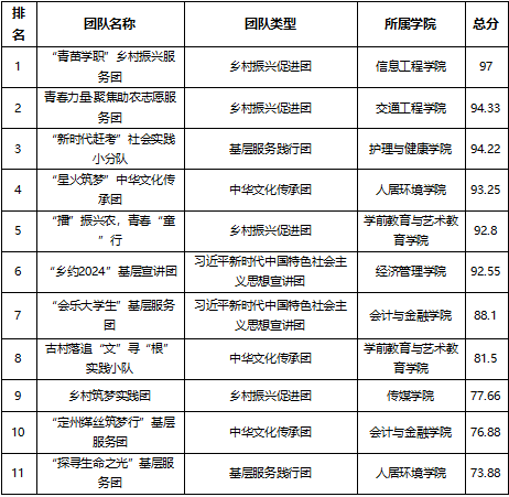 依据石团联发〔2024〕10号文件《关于开展2024年石家庄市大学生暑期文化科技卫生“三下乡”社会实践活动的通知》的要求,我校组织开展 2024 年暑期大学生文化科技卫生“三下乡”社会实践活动评选。经团队申报、学院推荐、校团委组织评委进行评选,并报校领导审议,现将各团队评选排名公布如下: