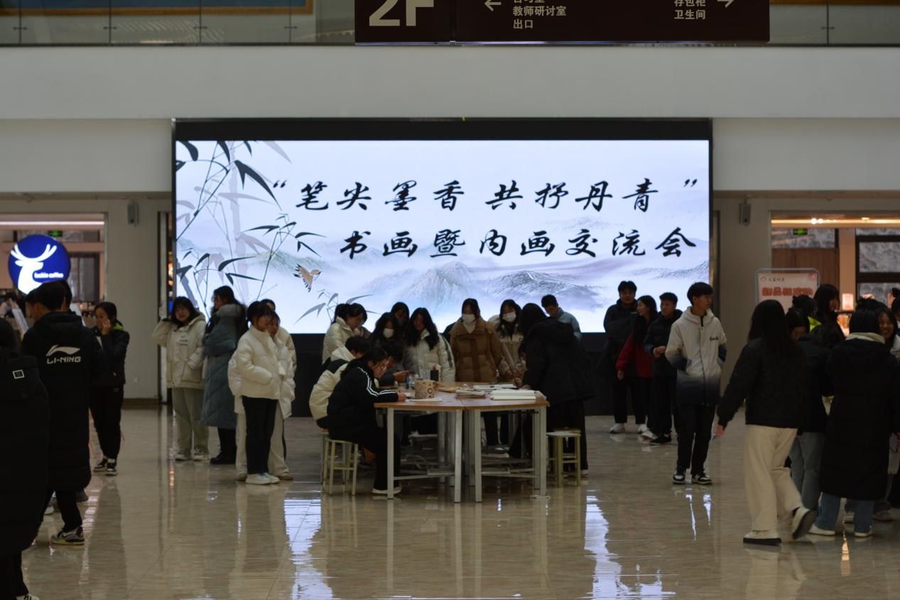 书画爱好者们在现场进行交流学习,并分享宝贵的创作经验与艺术心得,现场充满了墨香的气息。我校学生与绘者们在书画的世界中互相学习,不仅领略到了独特的艺术技巧,也一同感悟了中华文化的博大精深。