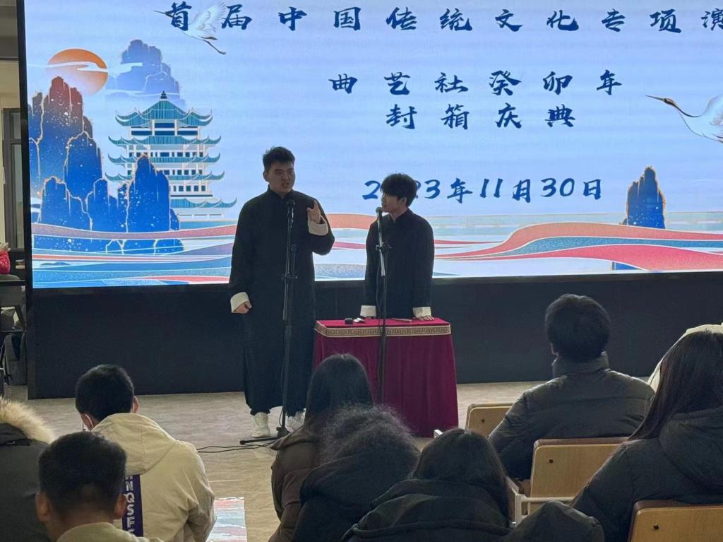 为丰富校园文化,发挥我校学生社团特色,11月30日曲艺社在图书馆二楼成功举办“粉墨春秋,百年传承”首届中国传统文化专场演出活动。