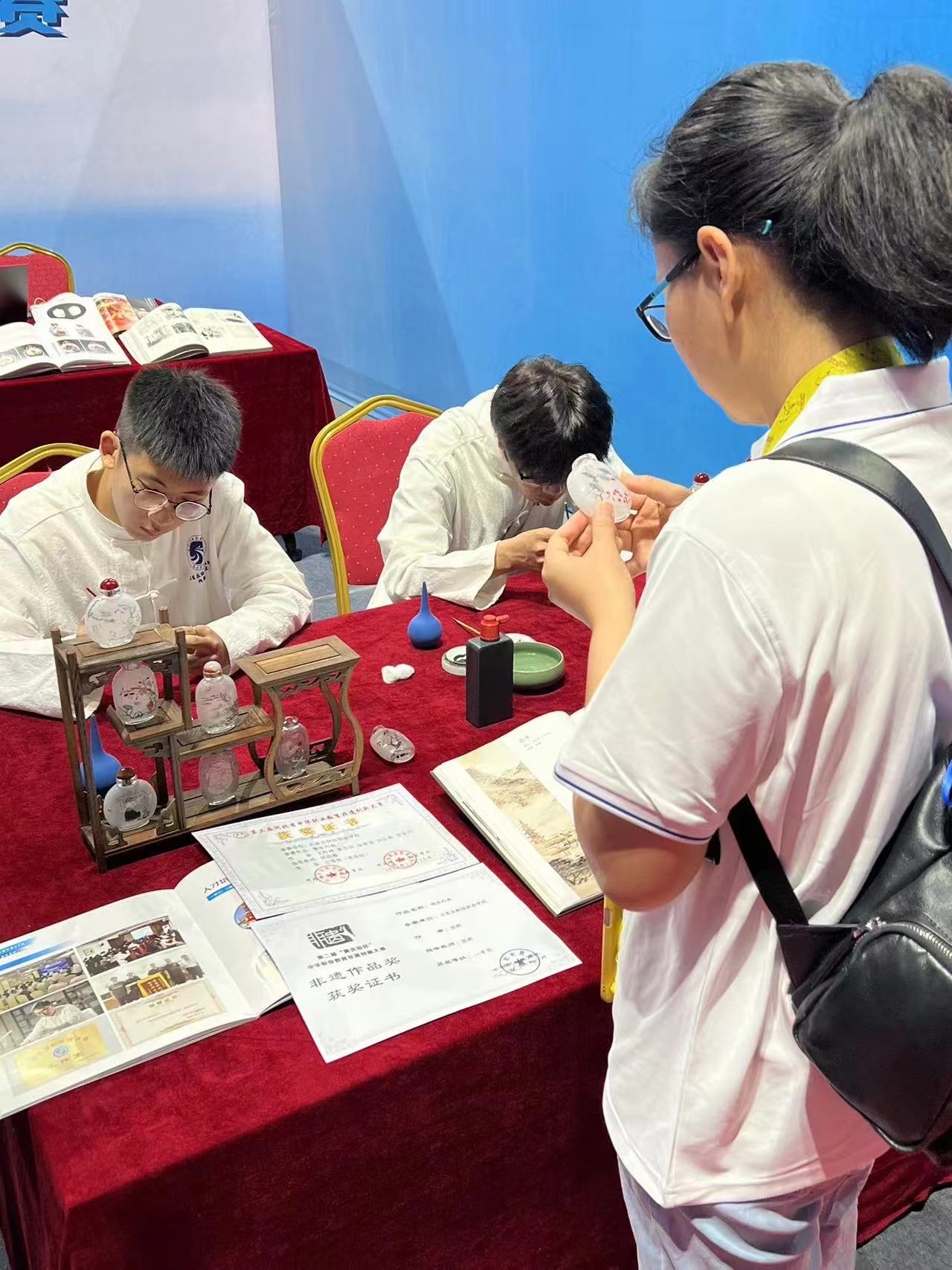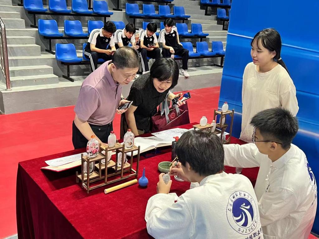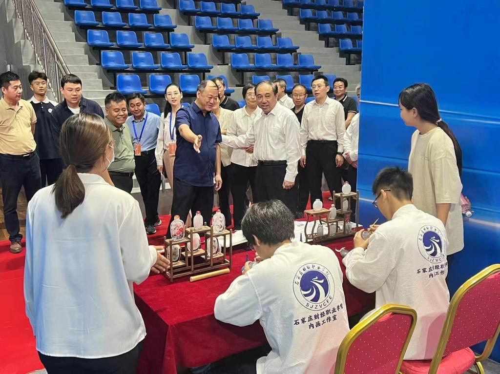 省政府领导到我校展区参观指导工作,观看我校非遗传承项目--衡水内画,学生亲手制作的文化传承展品,对我校“非遗进校园”工作给与了充分肯定。
