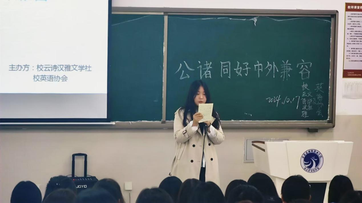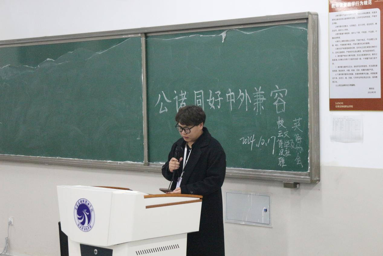 在云诗汉雅文学社李敬茹和英语协会冯思瑶的主持下活动正式开始。