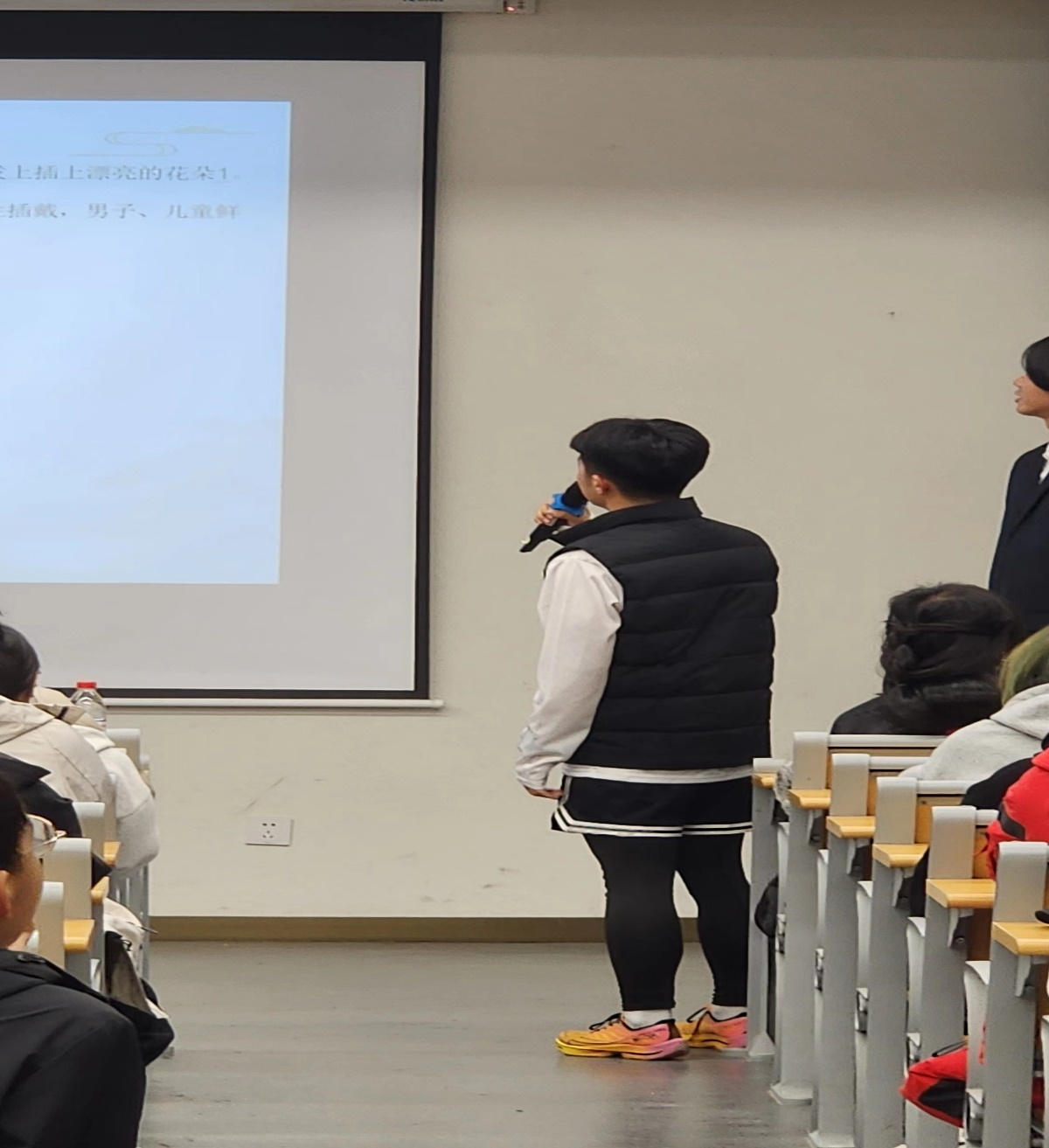 除了理论知识的讲解,活动还设置了互动环节。同学们积极参与汉服知识问答,现场气氛热烈。答对问题的同学获得了精美礼物作为奖励,这不仅增加了活动的趣味性,也进一步加深了大家对汉服文化的理解和记忆。