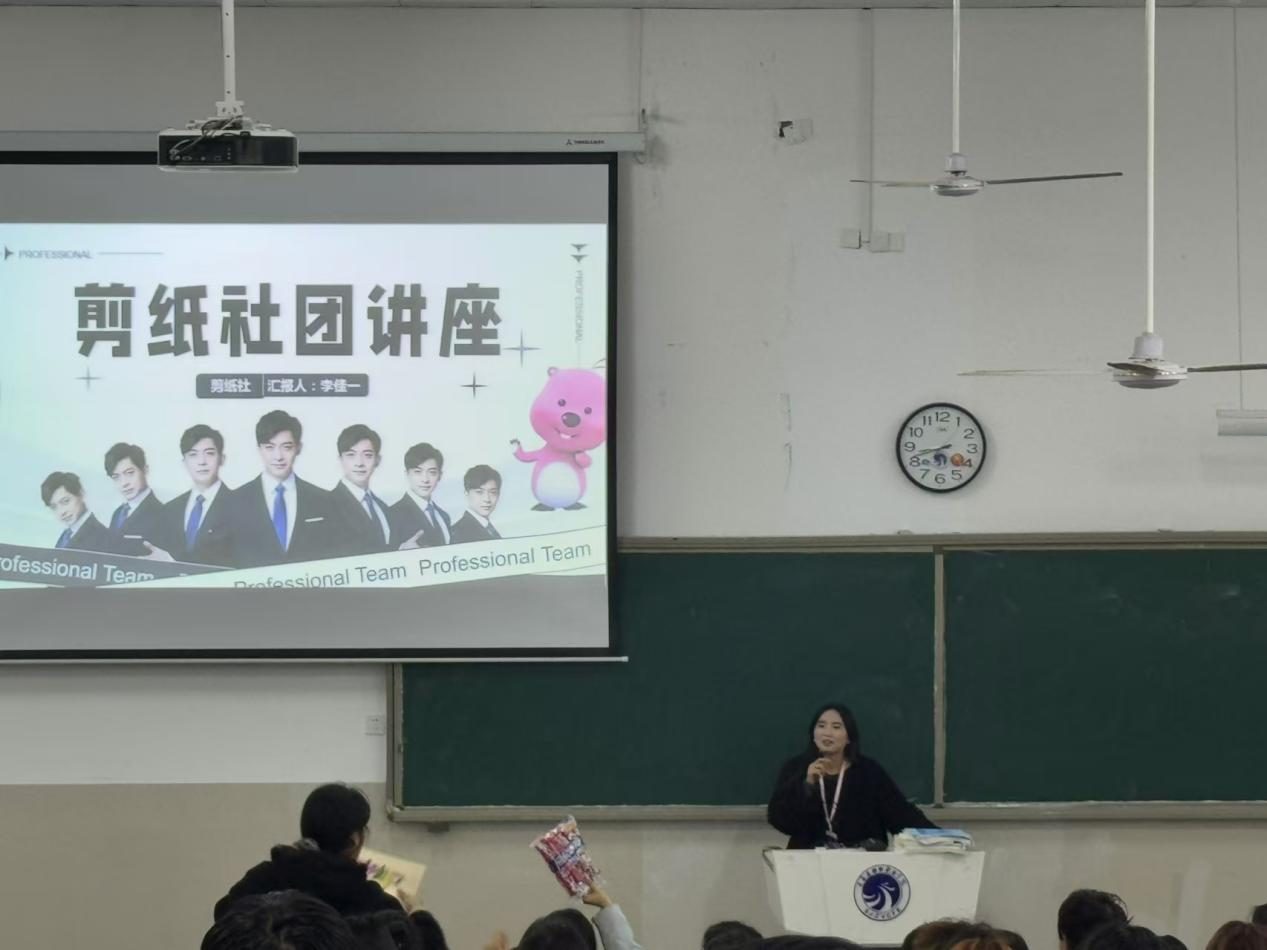 近日,一场别开生面的剪纸艺术讲座“妙剪生花”在B教学楼201成功举办,吸引了众多剪纸爱好者与同学们参与,现场气氛热烈,座无虚席。此次讲座由剪纸社李佳一担任主讲嘉宾,旨在弘扬中华传统剪纸艺术,激发大家对非物质文化遗产的热爱与传承意识。