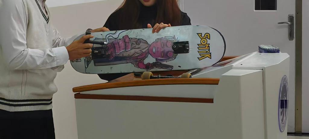 通过社团日常训练视频、滑板发展史漫画,生动的讲解了滑板的历史演变;通过分享社团成员“从摔跤到流畅滑行”的成长故事,拉近与零基础同学的距离;聚焦“校园场景安全”,用实物演示护具的正确穿戴方式,明确划定“校园内适合练习的区域”与“禁止滑行区域(如教学楼、楼梯口)”,彻底打消了同学们对“滑板危险”的顾虑。