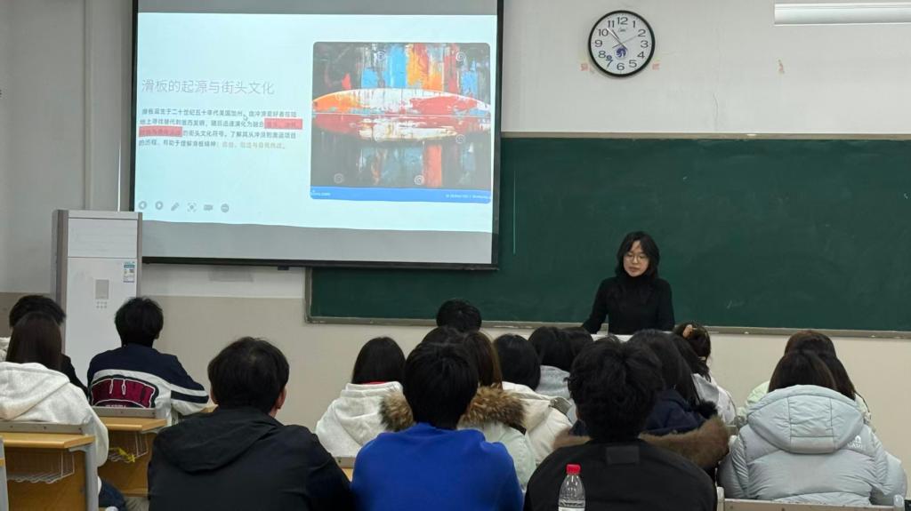 为了充盈学校内的体育氛围,让更多同学感受潮流运动的乐趣,10月29日,我校西海岸滑板社在B教学楼106举办“轮子上的艺术”滑板知识专题讲座。本次活动吸引了广泛的同学参与,现场满是青春活力与探索热情。