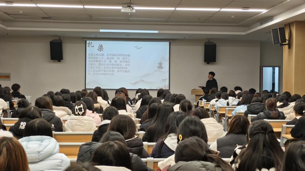 为传承中华优秀传统手艺,深化青年学子对非遗技艺的认知认同,大力弘扬精益求精的工匠精神,11 月 6 日,“捆扎留诗意,浸染显匠心” 主题讲座在我校图书馆第二报告厅成功举办。活动通过传统技艺讲解与视频观摩相结合的形式,助力社员系统理解捆扎与浸染技艺的文化内涵,为校园传统文化传承注入鲜活力量。