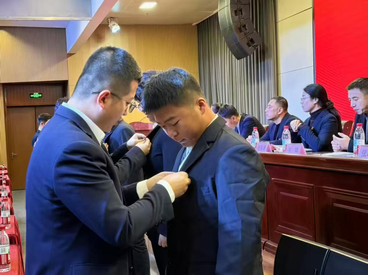 随后在全场师生的见证下,各二级学院团总支书记为新团员佩戴团徽,象征着责任与荣誉的团徽佩戴在胸前,这小小的团徽不仅是一份荣誉,更是一份沉甸甸的责任,将青春的使命深深镌刻在新团员心中。