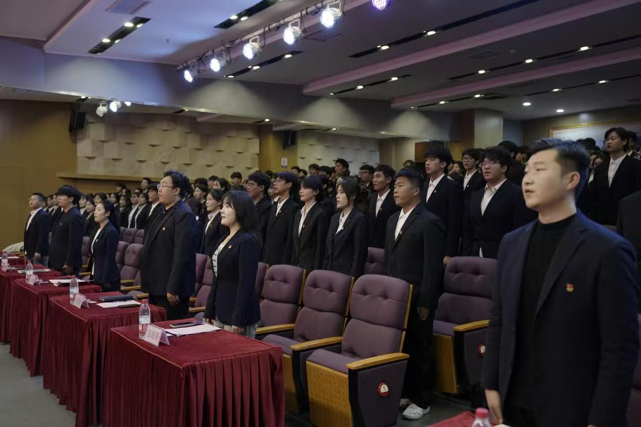 为进一步加强共青团组织建设,学习贯彻党的二十大精神,深入贯彻落实习近平新时代中国特色社会主义思想,引导青年学生坚定理想信念、勇担时代使命,传承红色基因,培育时代新人,切实增强共青团员的先进性和光荣感,我校团委于2025年11月21日14:30在图书馆第一报告厅隆重举行入团仪式。出席领导有学生处处长王志军,团委副书记张晓莹,以及各二级学院党总支书记、副书记,团总支书记和全体新团员,会仪由团委老师刘悦主持。