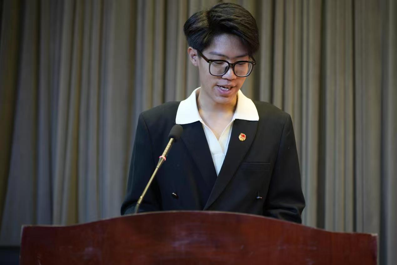 交通工程学院王博宇同学作为新团员代表进行表态发言,他深刻阐述了入团的政治意义,表明将严格以团员标准要求自己,在学业上刻苦钻研、在实践中提升能力,切实履行新时代青年的责任担当。