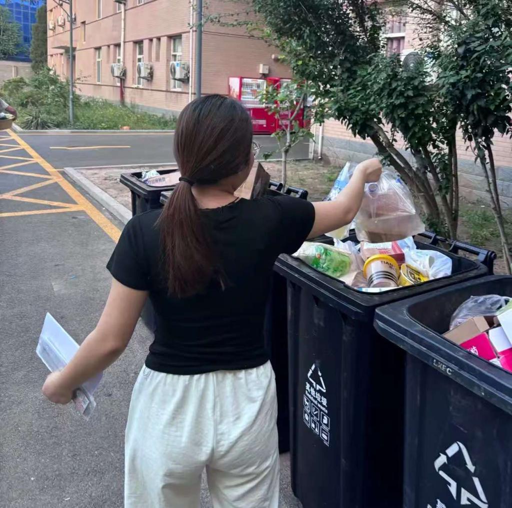 活动中,志愿者们手持垃圾袋,认真清理宿舍角落的垃圾,将分散的垃圾集中分类投放至垃圾桶。他们以细致的行动,践行着环保理念,用汗水为校园整洁贡献力量。