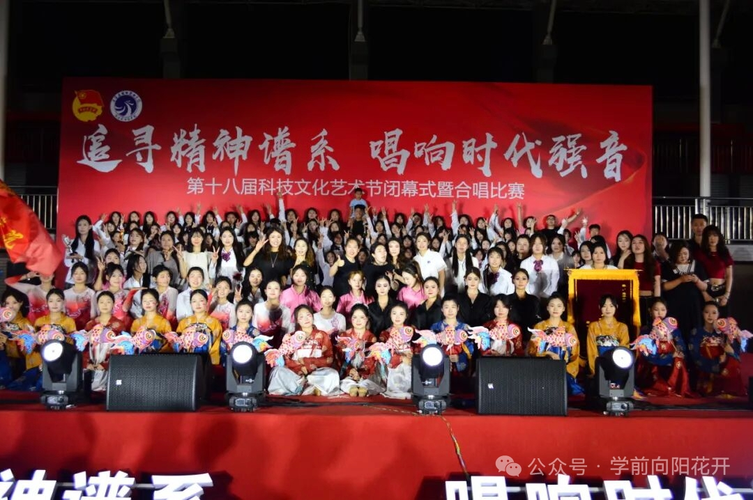 在第十八届科技文化艺术节闭幕式暨合唱比赛——追寻精神谱系,唱响时代强音的璀璨舞台上,由24级学前教育、婴托和舞蹈专业同学组成的凌云合唱团。她们以昂扬之姿、饱满之情震撼登场。两首由专业音乐教师精心编排的歌曲,为观众展开一场别开生面的音乐之旅,深情唱响教育初心,激昂歌颂科学家精神,献上一场直击心灵的视听盛宴。