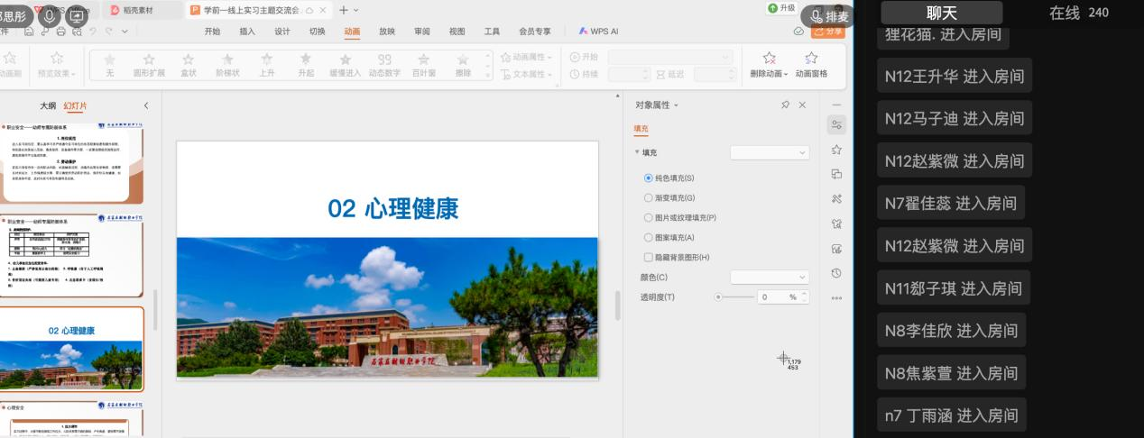 为帮助 2023 级学生以健康心态迎接实习挑战,顺利完成从校园到职场的角色转变,8月24日,学前教育与艺术教育学院组织开展 2023 级实习就业第二期主题班会,以 “实习心理健康教育” 为核心,为全体已经步入实习岗位的学生送上全方位的心理护航指南。学院辅导员及2023级全体学生通过线上线下结合的方式参与本次班会。