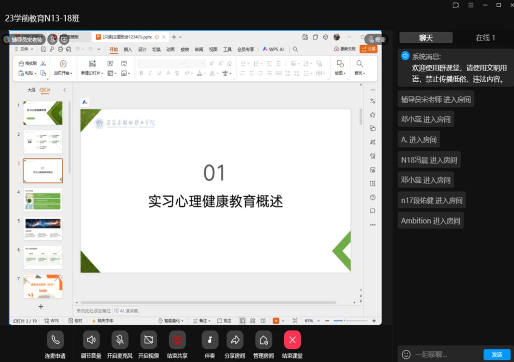 会议结合学前教育艺术教育专业就业特点,围绕“求职压力源解析”“情绪自我调节”“职业心态构建” 三大模块展开。老师通过真实案例剖析,梳理了毕业生常见的岗位选择迷茫、面试恐惧、自我价值怀疑等心理困扰,针对性传授正念呼吸、认知重构等实用调适技巧。