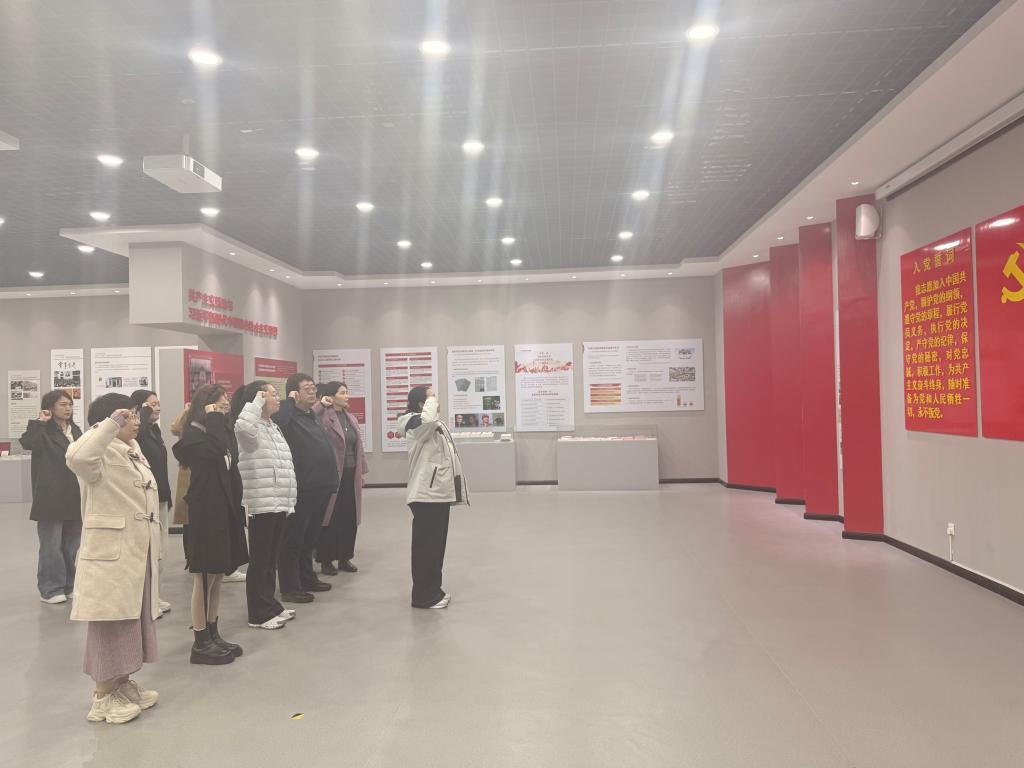 共产主义运动展室是石家庄市关心下一代爱国主义教育基地和石家庄市教育局授予的首批大思政课实践教学基地,现已成为我校特色文化育人和对外交流的重要名片。展室内一件件珍贵的展品、一幅幅生动的历史画卷,将党员们带回了那个风雨如磐的年代。参观过程中,同志们或驻足凝视,或认真记录,不时交流感悟,现场气氛热烈而庄重。从共产主义运动的起源到中国共产党的发展壮大,从马克思主义在中国的传播到新时代中国特色社会主义的实践,展室以丰富的史料全面展示了共产主义运动的壮阔历程。参观结束后,全体党员面对鲜艳的中国共产党党旗,高举右拳,庄严宣誓。“我志愿加入中国共产党,拥护党的纲领,遵守党的章程……”铿锵有力的誓言在展室内回荡,表达了学生处党支部全体党员对党的无限忠诚与坚定承诺。重温入党誓词不仅是对入党初心的深刻回望,也彰显了党员们在新时代新征程中履职尽责、奋勇争先的坚定决心。