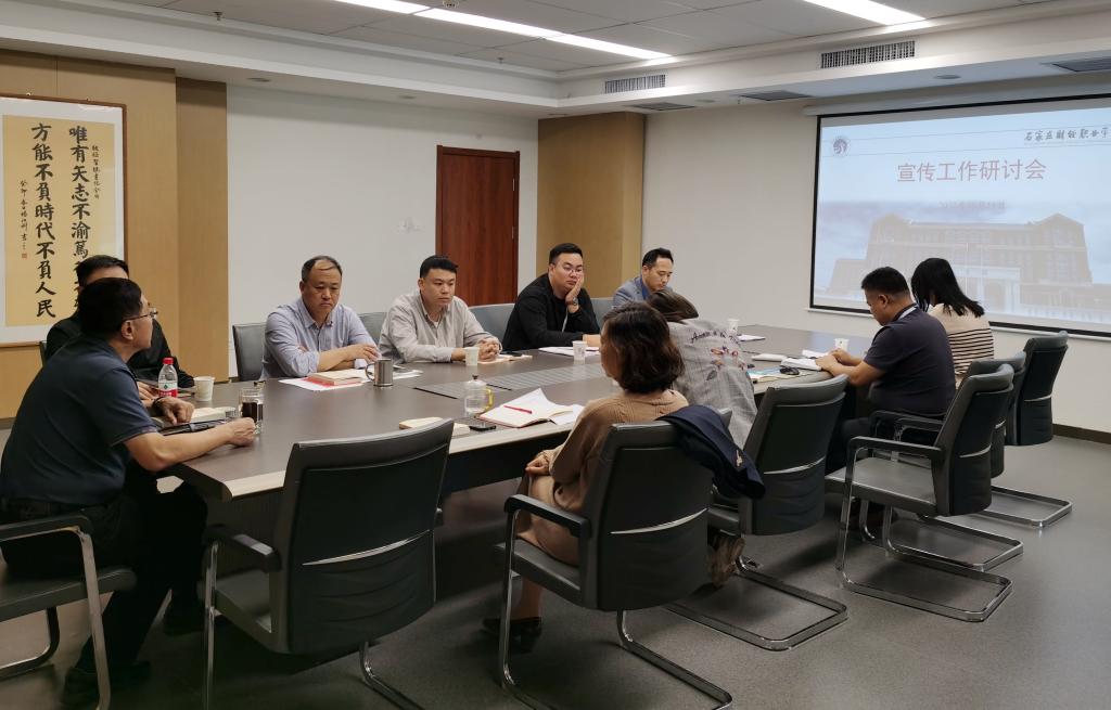 10月11日,我校在卧龙校区第三会议室召开宣传工作研讨会。董事长肖瀚、校长赵建华、党委书记薛向东、党委副书记肖玉辉、副校长李同鑫、校长助理赵振新出席会议,宣传部、发展规划处、招生办公室负责人参加会议。会议由宣传部部长王英奎主持。