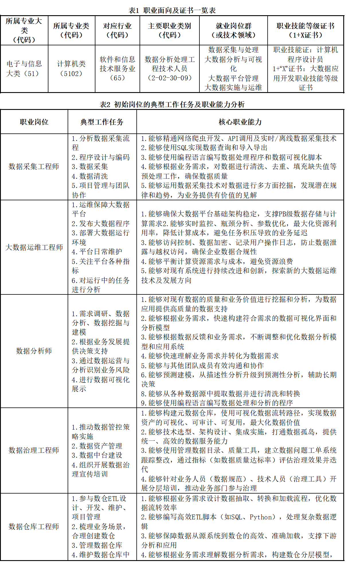 为适应巨大流量,人群推广等领域带来的新变化,顺应数字化、智能化发展的新趋势,对接新产业、新业态、新模式下大数据相关岗位(群)的新要求,不断满足大数据行业高质量发展对高素质技能人才的需求,推动职业教育专业升级和数字化改造,提高人才培养质量。